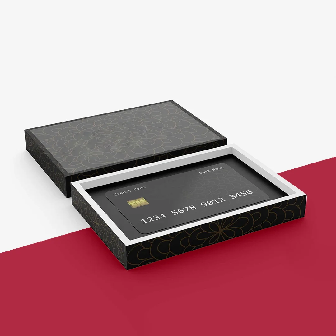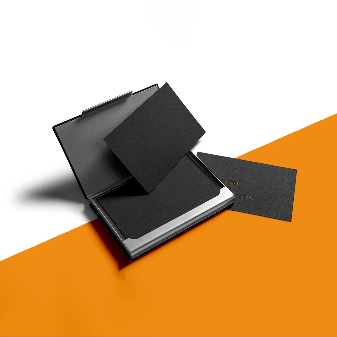 Custom business cards are specially designed packaging solutions used for storing and presenting business cards with professionalism. You can use these cards for items such as standard business cards, mini cards, folded cards, metal cards, luxury cards, appointment cards, and promotional materials.